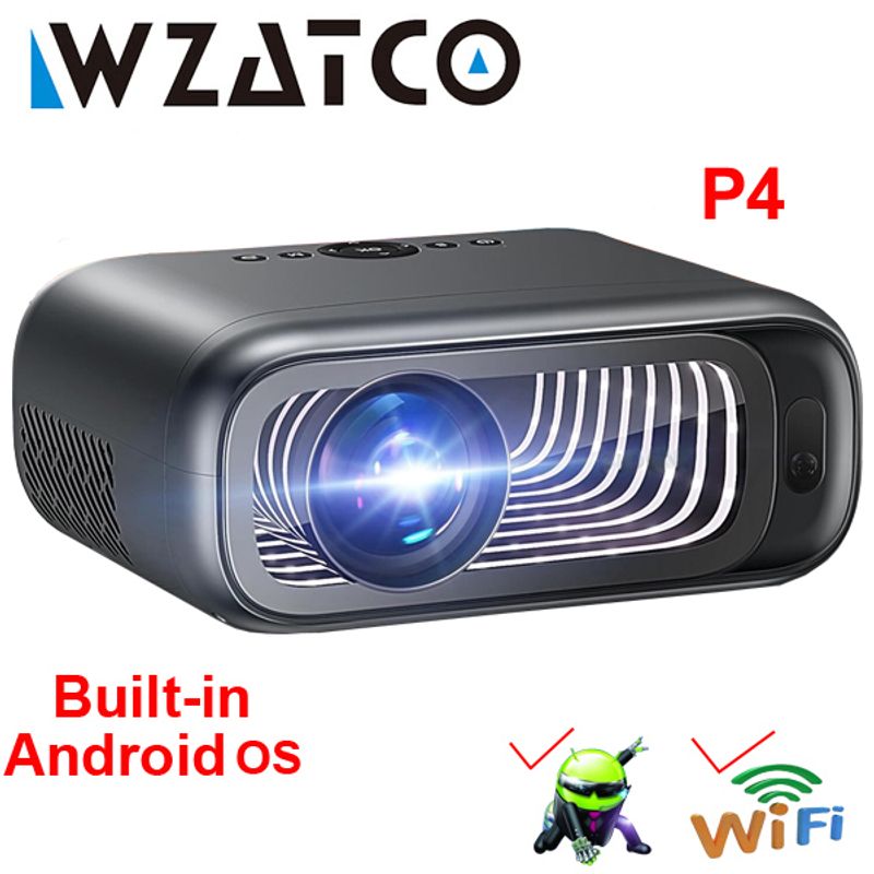 WZATCO New P4 Full HD 1080P Max 300inch support 4K Smart LED Projector Proyector WiFi 6 Bluetooth Movie Projector Auto Keystone Home Theater Cinema Proyector LCD Beamer