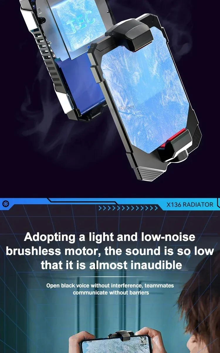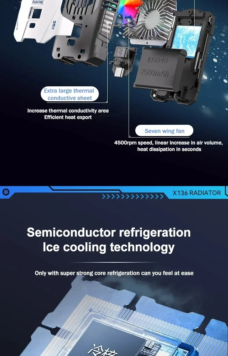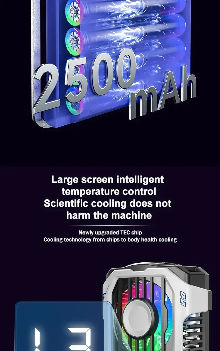 X136 Cell Phone Semiconductor Back-clip Cooling Radiator Built-in 2500mAh w/ Digital Display 3 Gears Adjustable PUBG Game Cooler