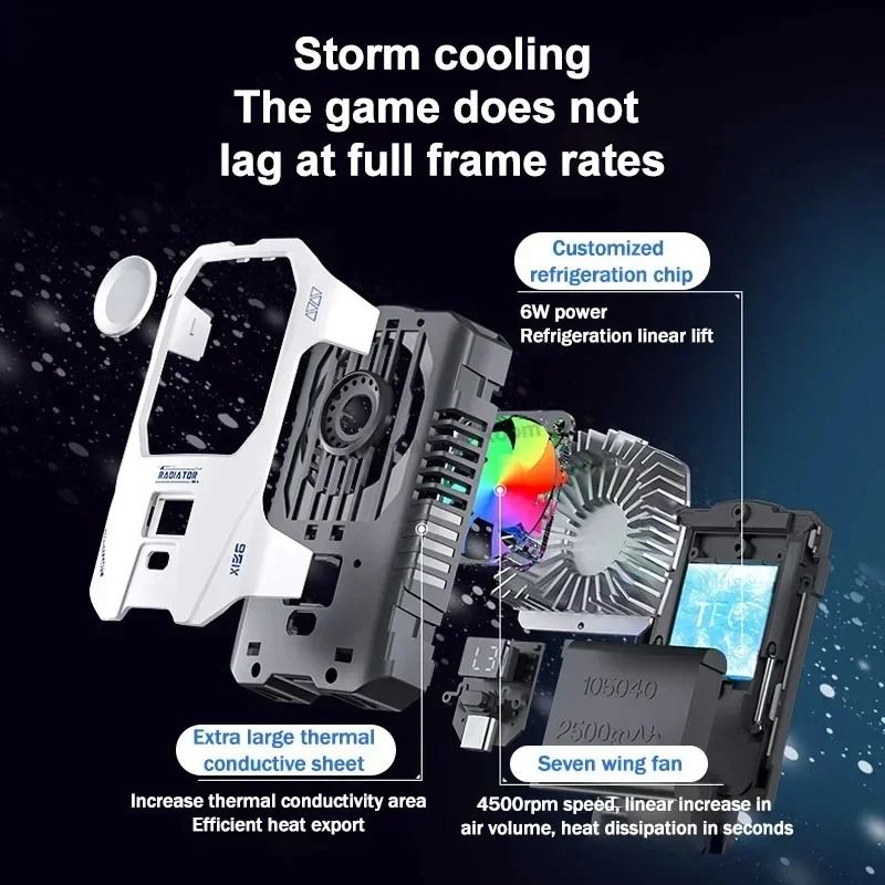 1. Storm cooling game does not lag, equipped with a 7-blade turbofan for fast heat dissipation, and the temperature drops rapidly, fully releasing the performance of the phone and allowing for enjoyable gameplay