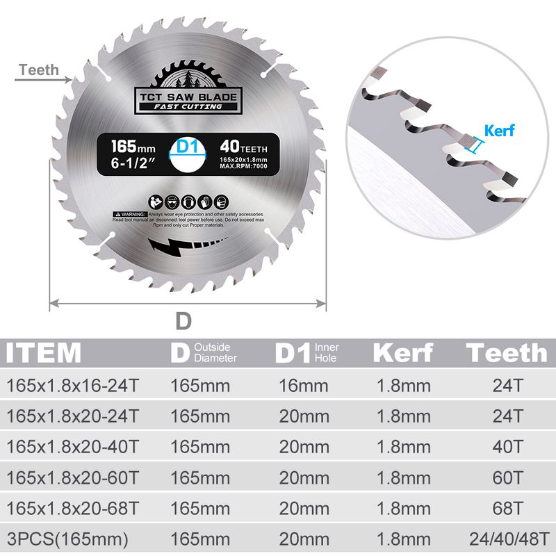 XCAN 1pc 165mm 24/40/48/60T Carbide Wood Saw Blades for Multi-function Power Tool TCT Circular Saw Blade Wood Cutting Disc