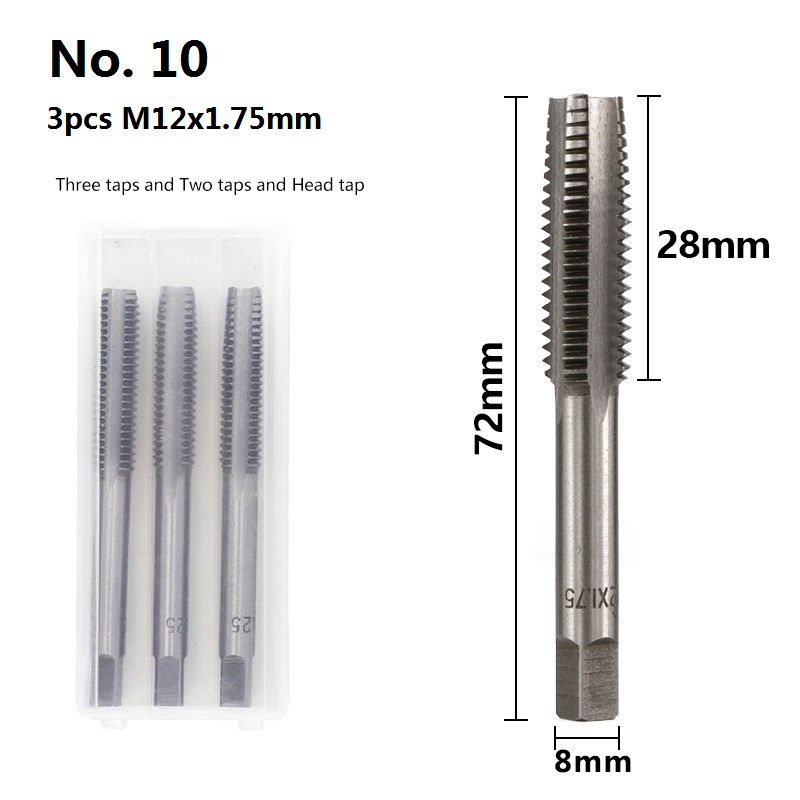 XCAN 3pcs M2-M12 Metric Hand Tap Set Machine Screw Tap Drill Bit Hand Tapping Tools Screw Thread Plug Tap Drill