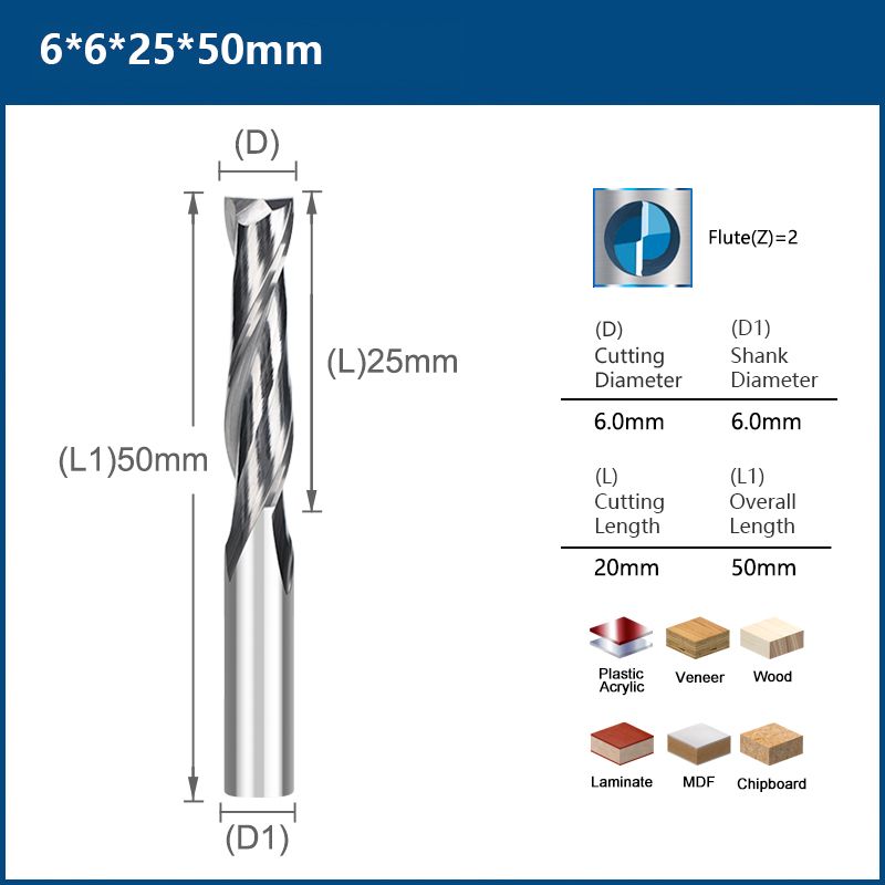 Perfect cutting ---- the design of 2 flutes, larger spiral chip space of CNC Router Bit makes non-stick crumbs, smooth cutting and fast chip-removal.