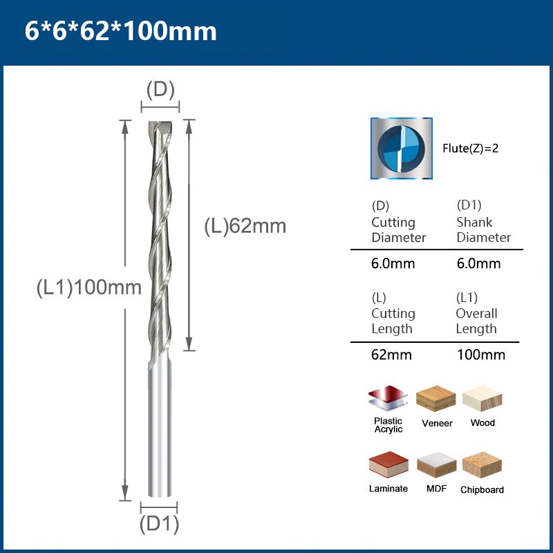 Perfect cutting ---- the design of 2 flutes, larger spiral chip space of CNC Router Bit makes non-stick crumbs, smooth cutting and fast chip-removal.