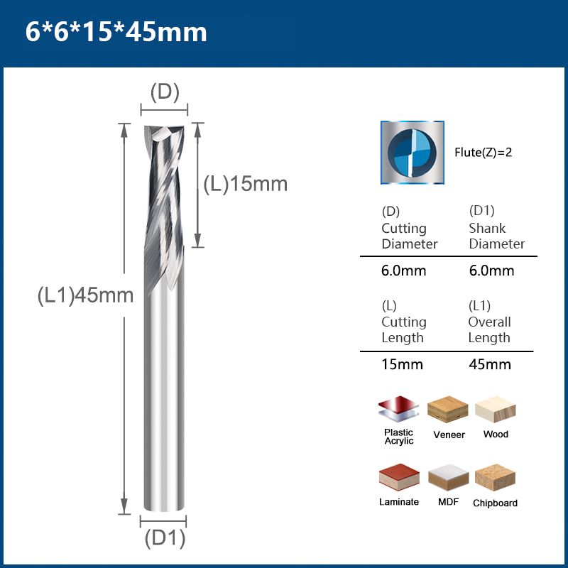 Perfect cutting ---- the design of 2 flutes, larger spiral chip space of CNC Router Bit makes non-stick crumbs, smooth cutting and fast chip-removal.
