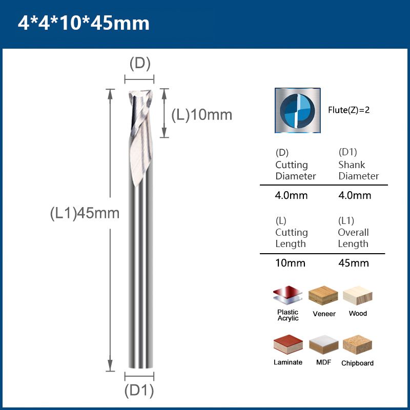 Perfect cutting ---- the design of 2 flutes, larger spiral chip space of CNC Router Bit makes non-stick crumbs, smooth cutting and fast chip-removal.