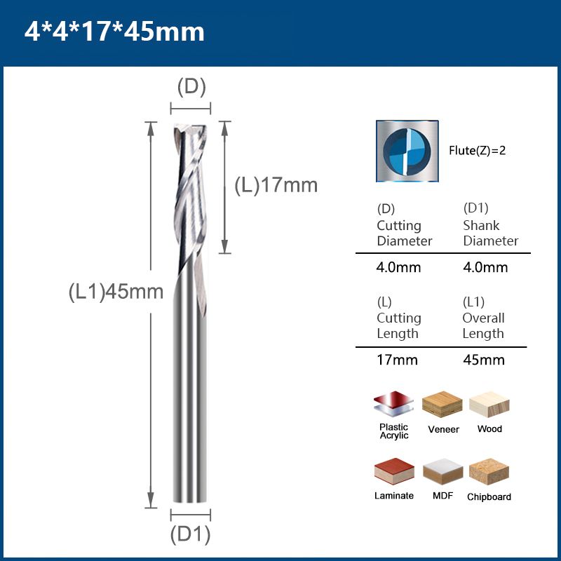 Perfect cutting ---- the design of 2 flutes, larger spiral chip space of CNC Router Bit makes non-stick crumbs, smooth cutting and fast chip-removal.