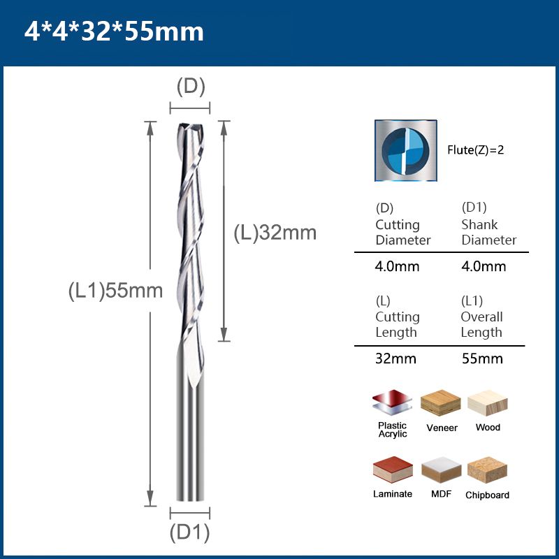 Perfect cutting ---- the design of 2 flutes, larger spiral chip space of CNC Router Bit makes non-stick crumbs, smooth cutting and fast chip-removal.