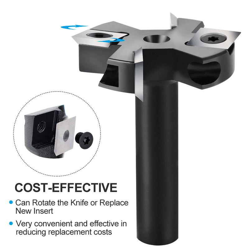2. These industrial router bits feature solid carbide inserts knives with four cutting edges that allow users to rotate the knife when one side becomes dull providing the quality finish available on woodworking tools. Exquisite woodworking cutter, precise, smooth, no burr edges planer router bit.