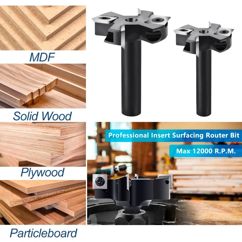 4. This planer router bit is perfect for wood slabs flattening, resurface or plane the top surface of the spoilboard. Used on soft and hard woods, particle board, MDF, plywood compact panel, laminate, acrylic and etc.