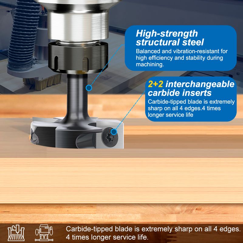 2. These industrial router bits feature solid carbide inserts knives with four cutting edges that allow users to rotate the knife when one side becomes dull providing the quality finish available on woodworking tools. Exquisite woodworking cutter, precise, smooth, no burr edges planer router bit.