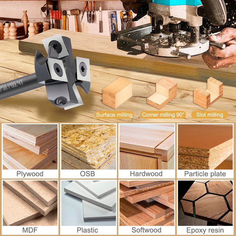 4. This planer router bit is perfect for wood slabs flattening, resurface or plane the top surface of the spoilboard. Used on soft and hard woods, particle board, MDF, plywood compact panel, laminate, acrylic and etc.