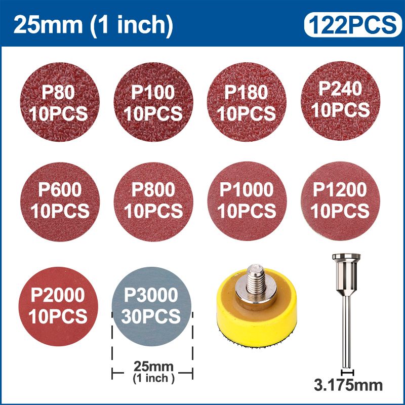 XCAN Sanding Disc 1/2/3 inch Round Abrasive Dry Sandpaper with Back-up Pad For Polishing Cleaner Tools Sanding Paper