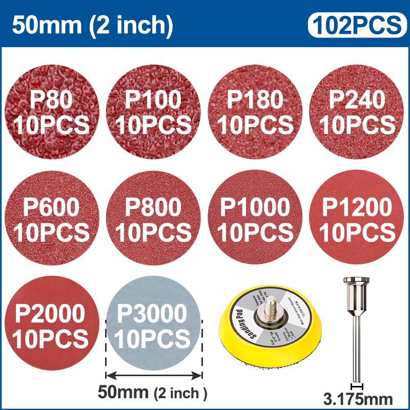 XCAN Sanding Disc 1/2/3inch Round Abrasive Dry Sandpaper with Back-up Pad For Polishing Cleaner Tools Sanding Paper