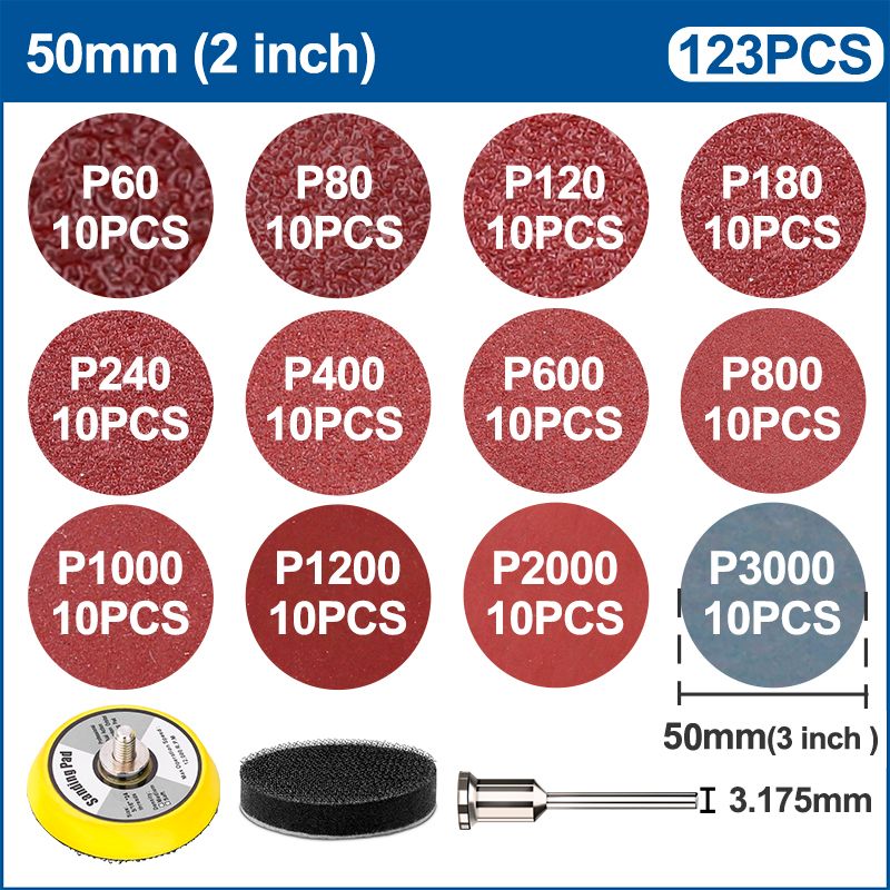 XCAN Sanding Disc 1/2/3inch Round Abrasive Dry Sandpaper with Back-up Pad For Polishing Cleaner Tools Sanding Paper