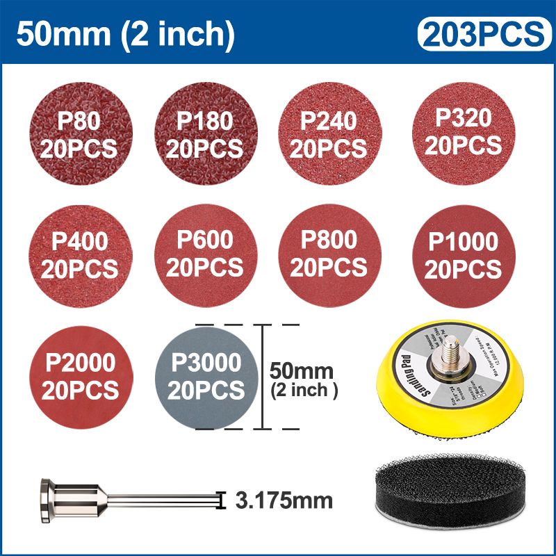 XCAN Sanding Disc 1/2/3inch Round Abrasive Dry Sandpaper with Back-up Pad For Polishing Cleaner Tools Sanding Paper