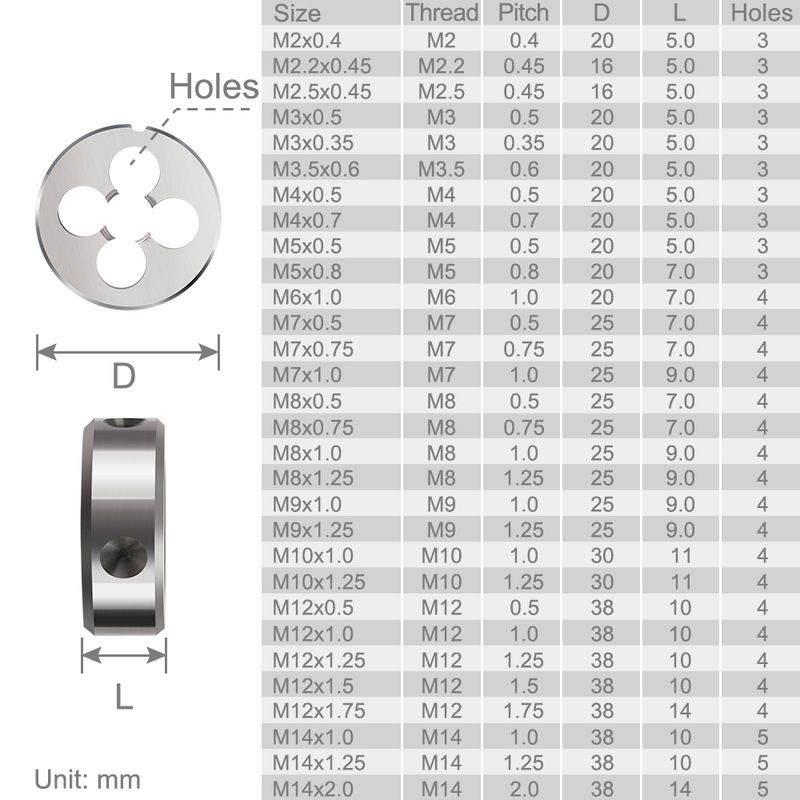 XCAN Thread Die Right Hand Metric Round Die Alloy Steel Threading Die Metal Cutting Tools M1 M2 M3 M4 M5 M6 M8 M10 M10 M12 M14