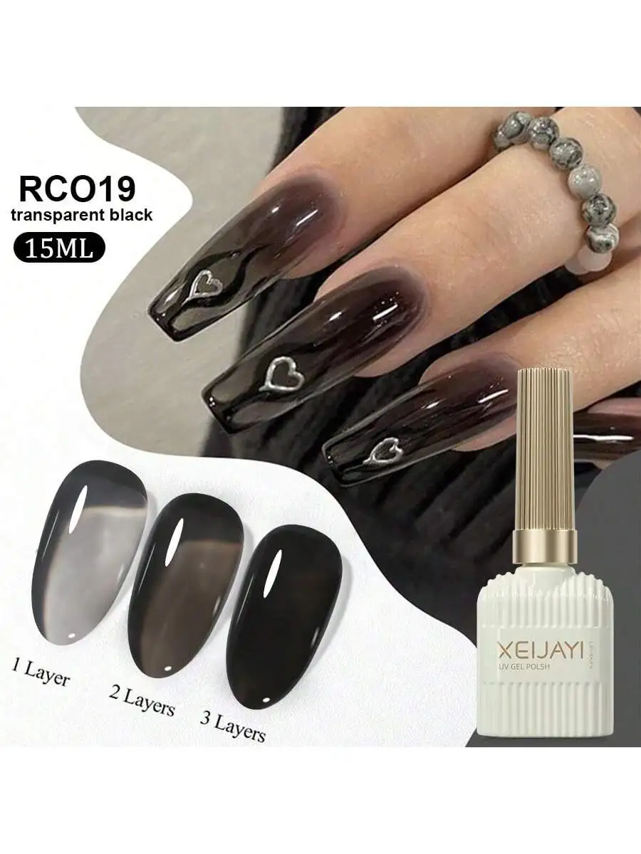 XEIJAYI 1Pc 15Ml Black Gel Nail Polish, All Seasons Nail Art, Soak Off Led Gel Nail Polish, Diy Home Salon Manicure,Nail Gifts