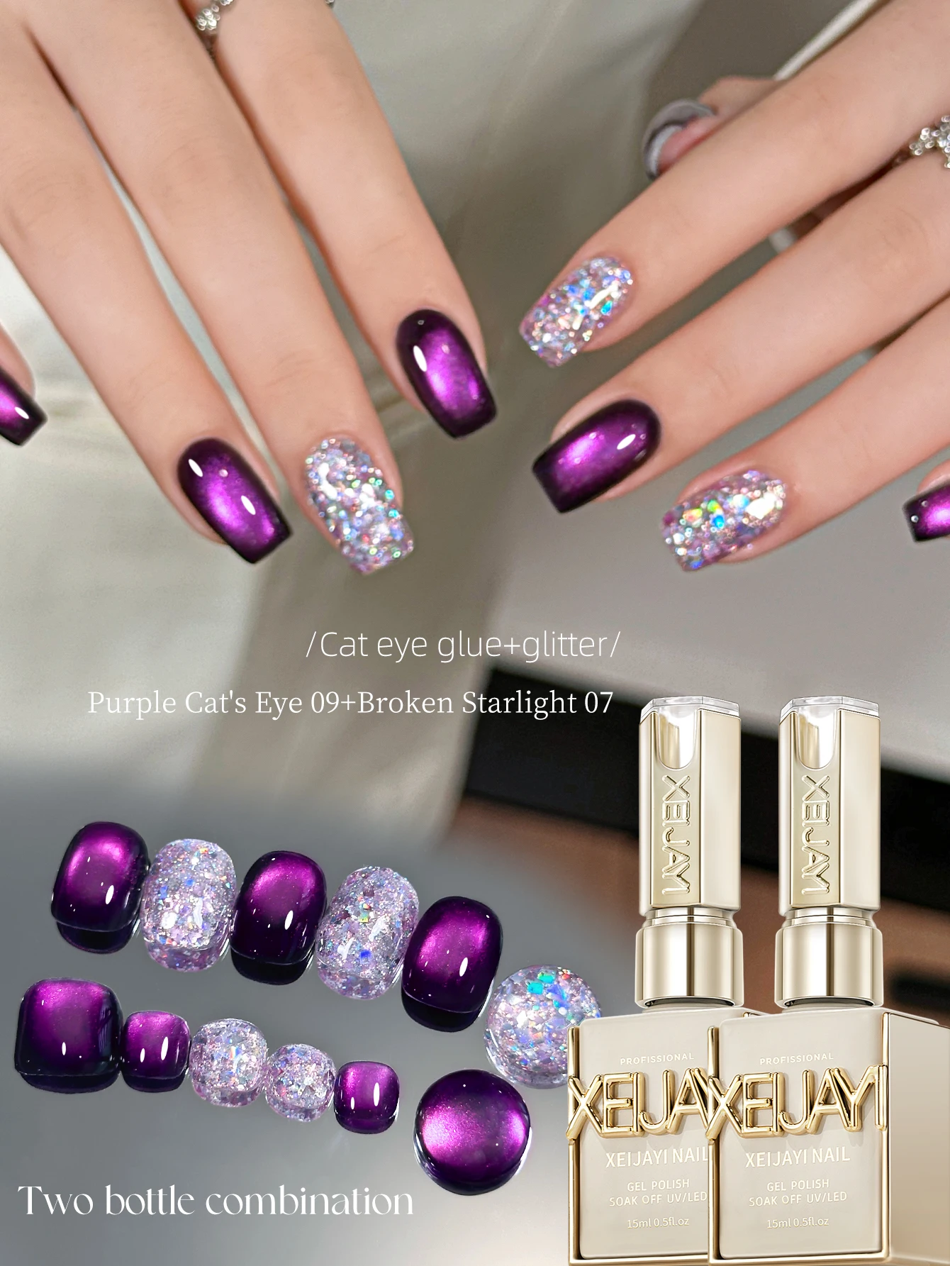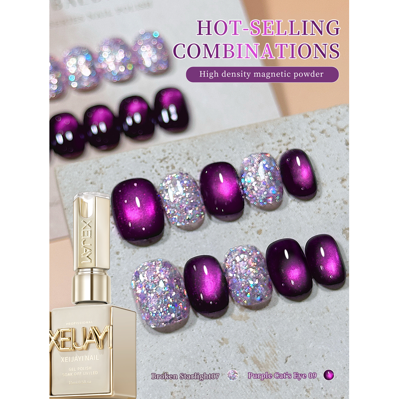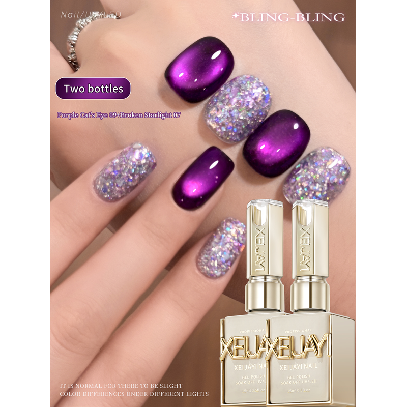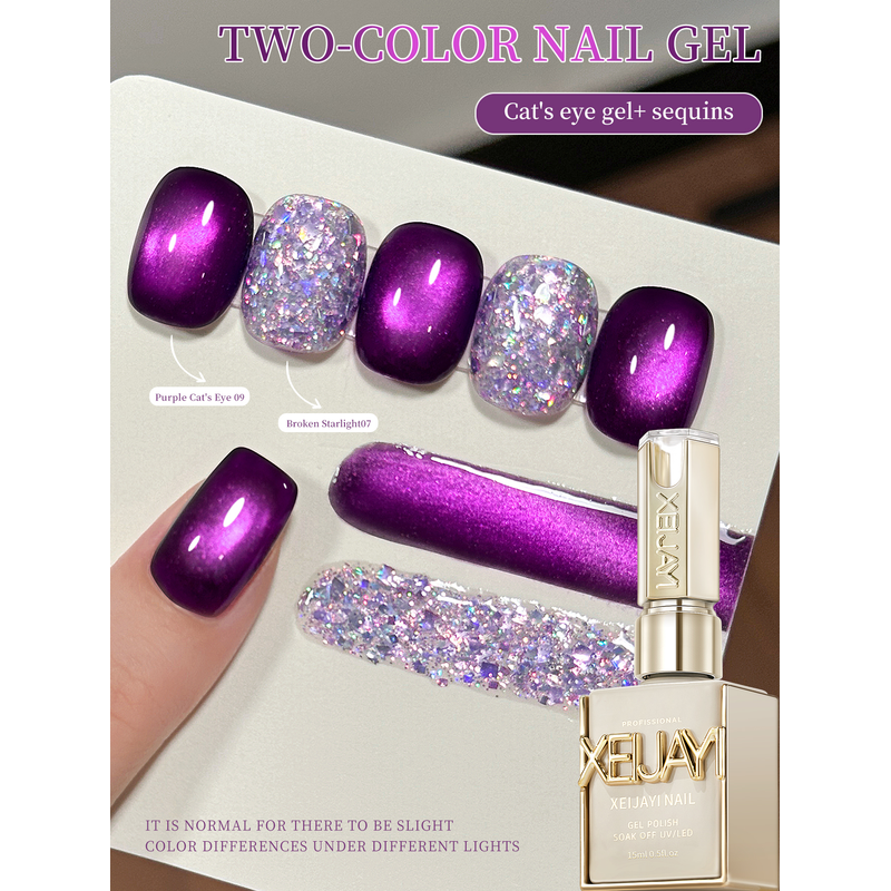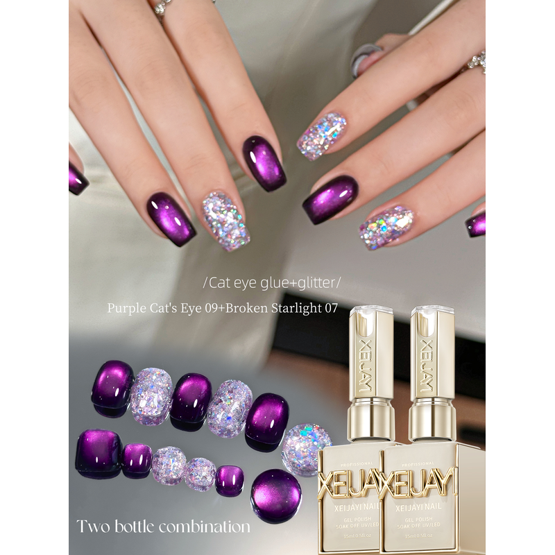 XEIJAYI 2Pcs 15ml Purple Cat Eye Gel Nail Polish Set,UV LED Soaking Nail Gel, Semi-Permanent, DIY Salon Quality Nail Art Gel