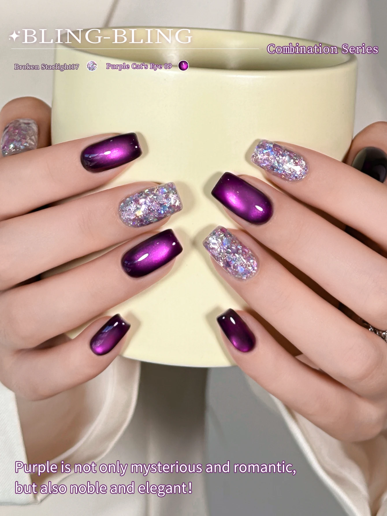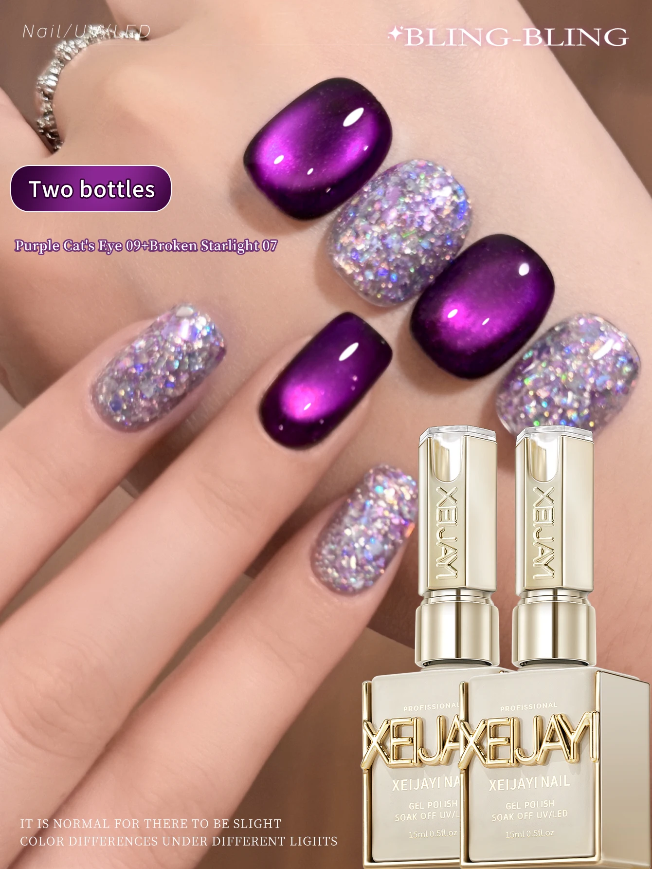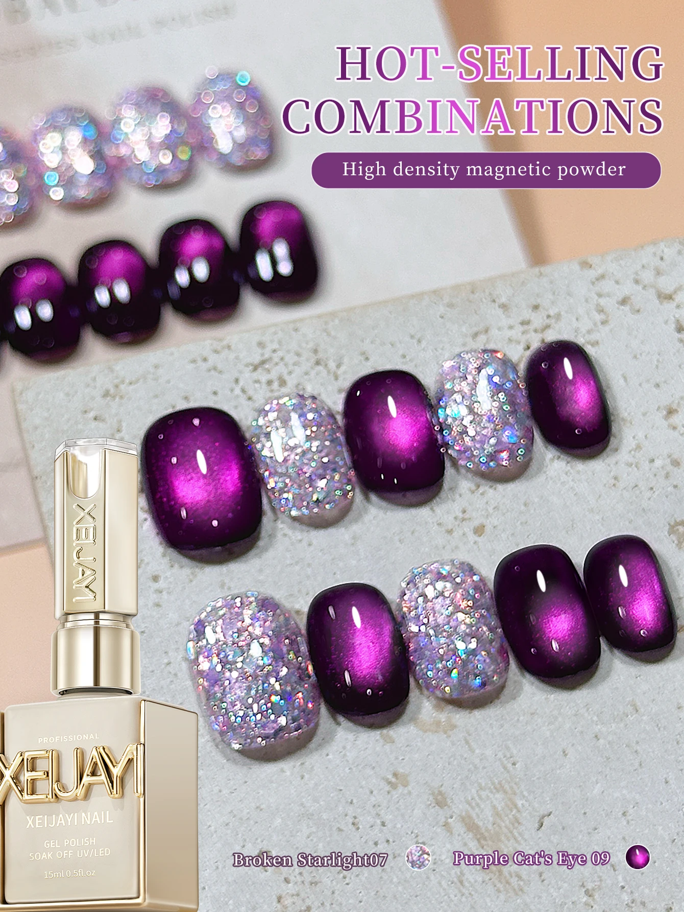 XEIJAYI 2Pcs 15ml Purple Cat Eye Gel Nail Polish Set,UV LED Soaking Nail Gel, Semi-Permanent, DIY Salon Quality Nail Art Gel