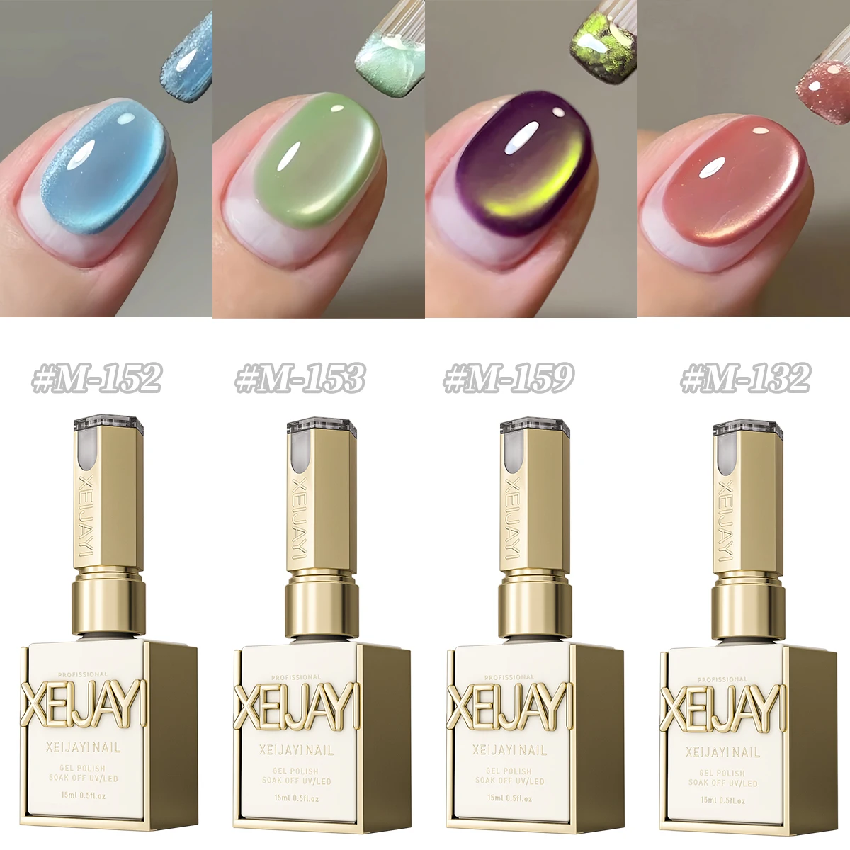 XEIJAYI 4pcs 15ml colorful Cat Eye Gel Nail Polish Set Starter Pure Soak Off No Wipe Nail Gel Polish Suitable