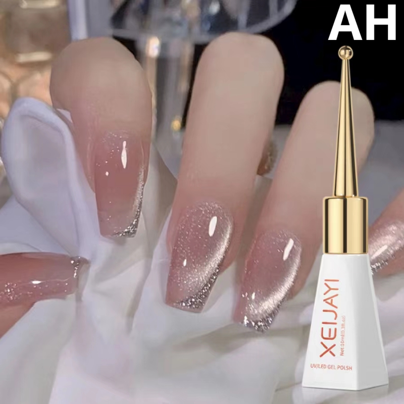 XEIJAYI Sparkling Glass Bead Cat Eye Gel Nail Polish Reflective Magnetic Gel Nude Color uv Permanent Seedling Varnish Nail Art