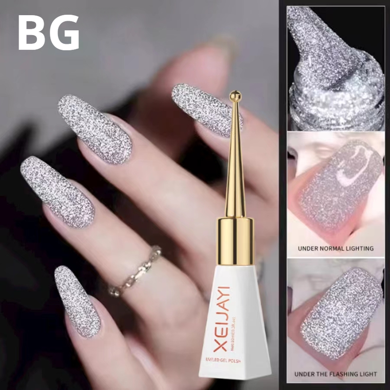 XEIJAYI Sparkling Glass Bead Cat Eye Gel Nail Polish Reflective Magnetic Gel Nude Color uv Permanent Seedling Varnish Nail Art