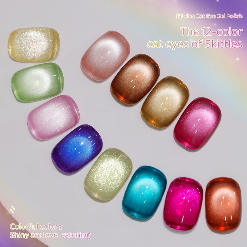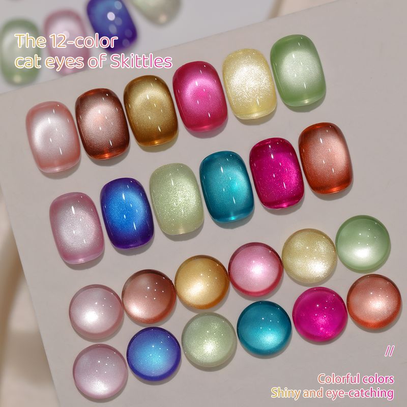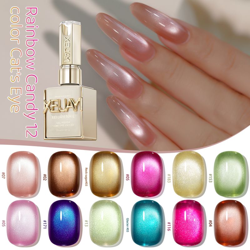 XEJAYI 12pcs 15ml Rainbow Candy Cat Eye Gel Nail Polish Set,UV LED Soaking Nail Gel, Semi-Permanent, DIY Salon Quality Nail Art