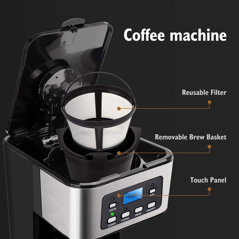6. Cleaning function: Calcium accumulation often occurs in drip coffee machines. When you notice a significant decrease in brewing time, you need to clean it in time: mix white vinegar with cold water to heat the water tank, and press the CLEAN button. After the brewing cycle is over, empty the glass bottle and rinse it clean with water