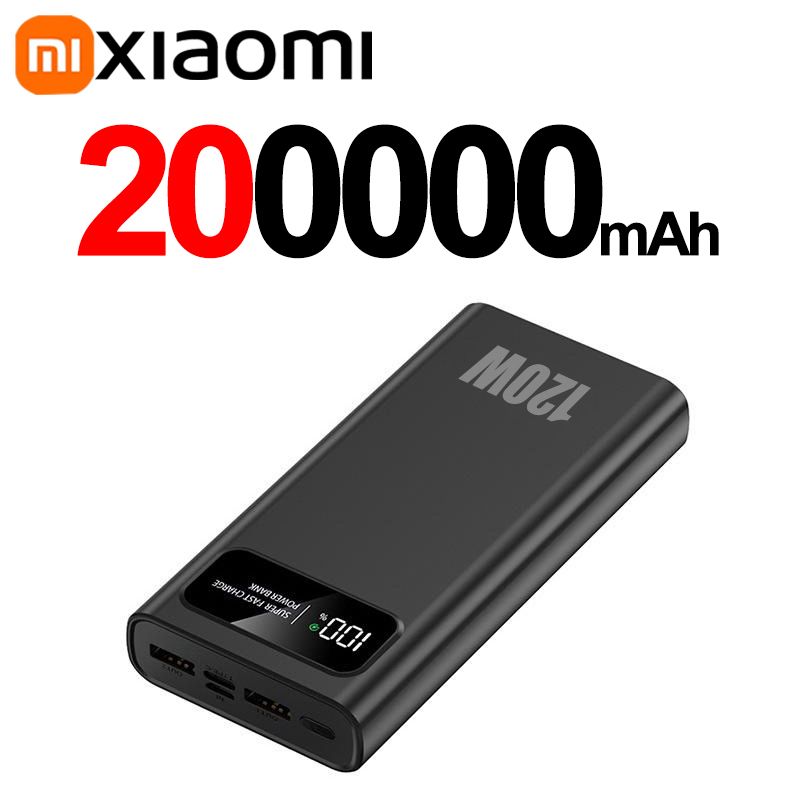Xiaomi 200000mAh LED Digital Display Power Bank High Capacity 120W Super Fast Charging Portable External Battery For IPhone New