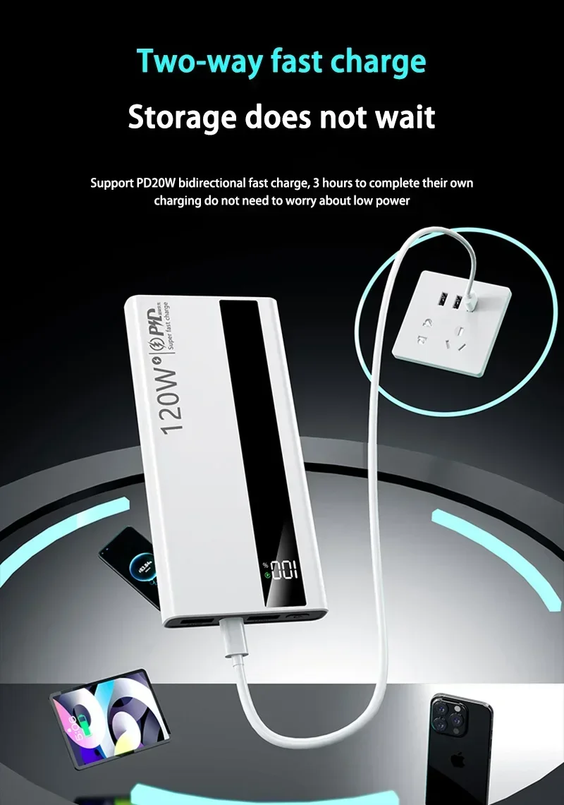 Xiaomi 50000mAh Powerbank 120W Super Fast Charging Portable Battery Charger Ultra Capacity LED Digital Display For IPhone