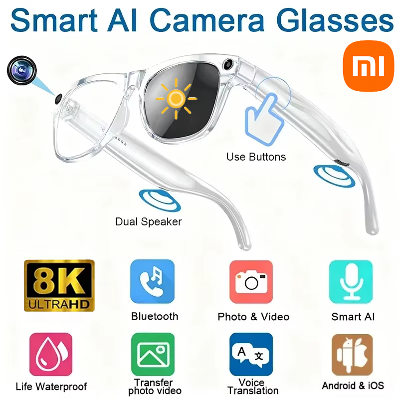 Xiaomi 800WHD ChatGPT AI Smart Glasses Video Photo Camera Glasses Multifunction Photochromic Bluetooth Music Calling Translation