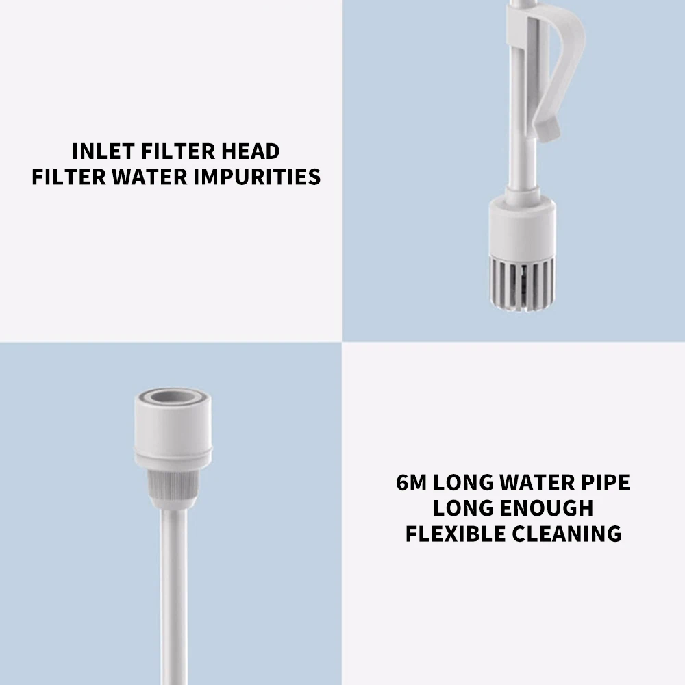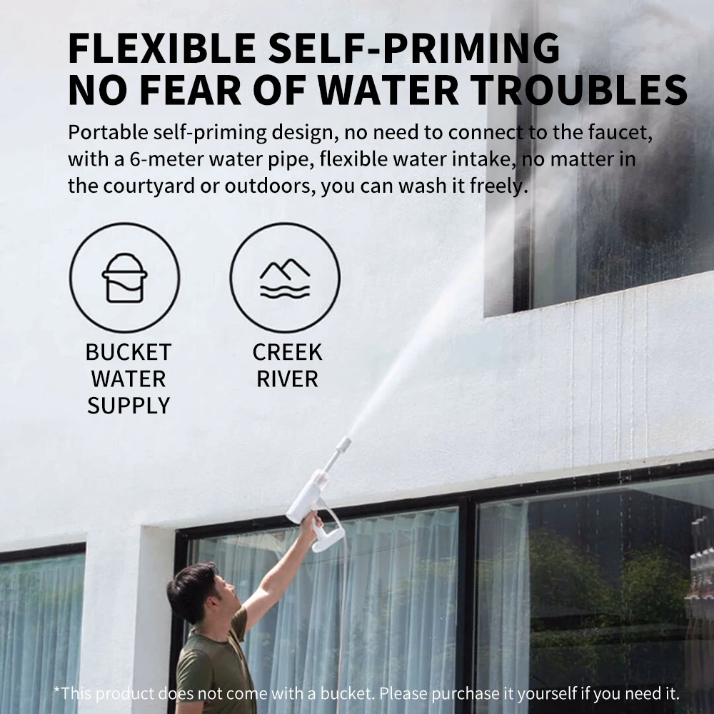 Portable self-priming design, no need to connect to the faucet,with a 6-meter water pipe, flexible water intake, no matter in the courtyard or outdoors, you can wash it freely