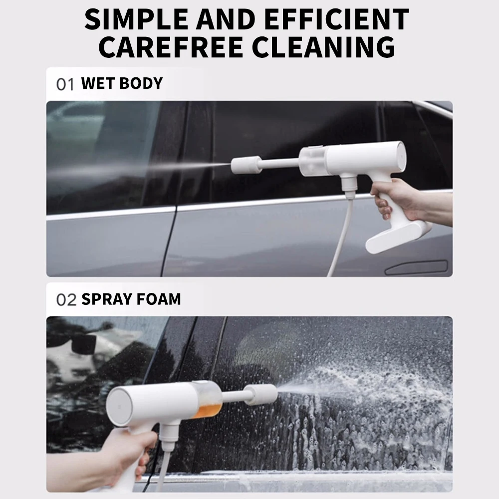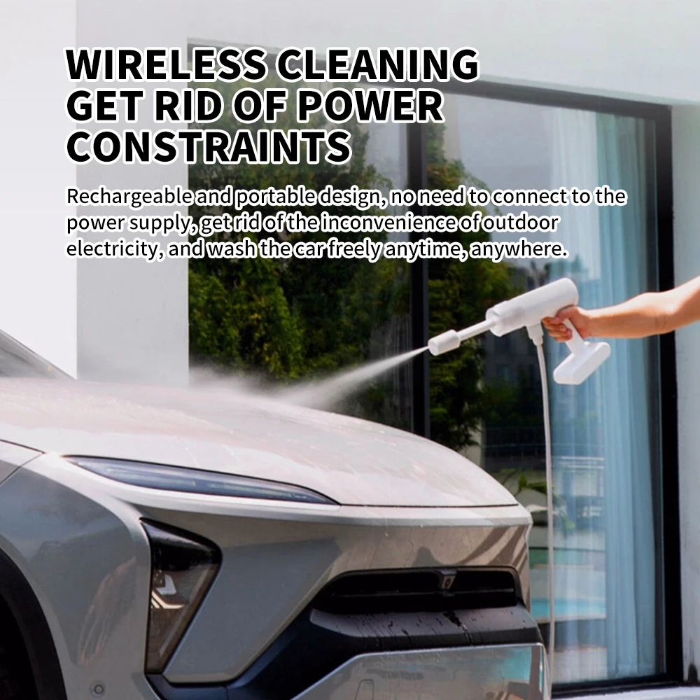 Rechargeable and portable design,no need to connect to the power supply;get rid of the inconvenience of outdoor electricity,and wash the car freely anytime,anywhere.