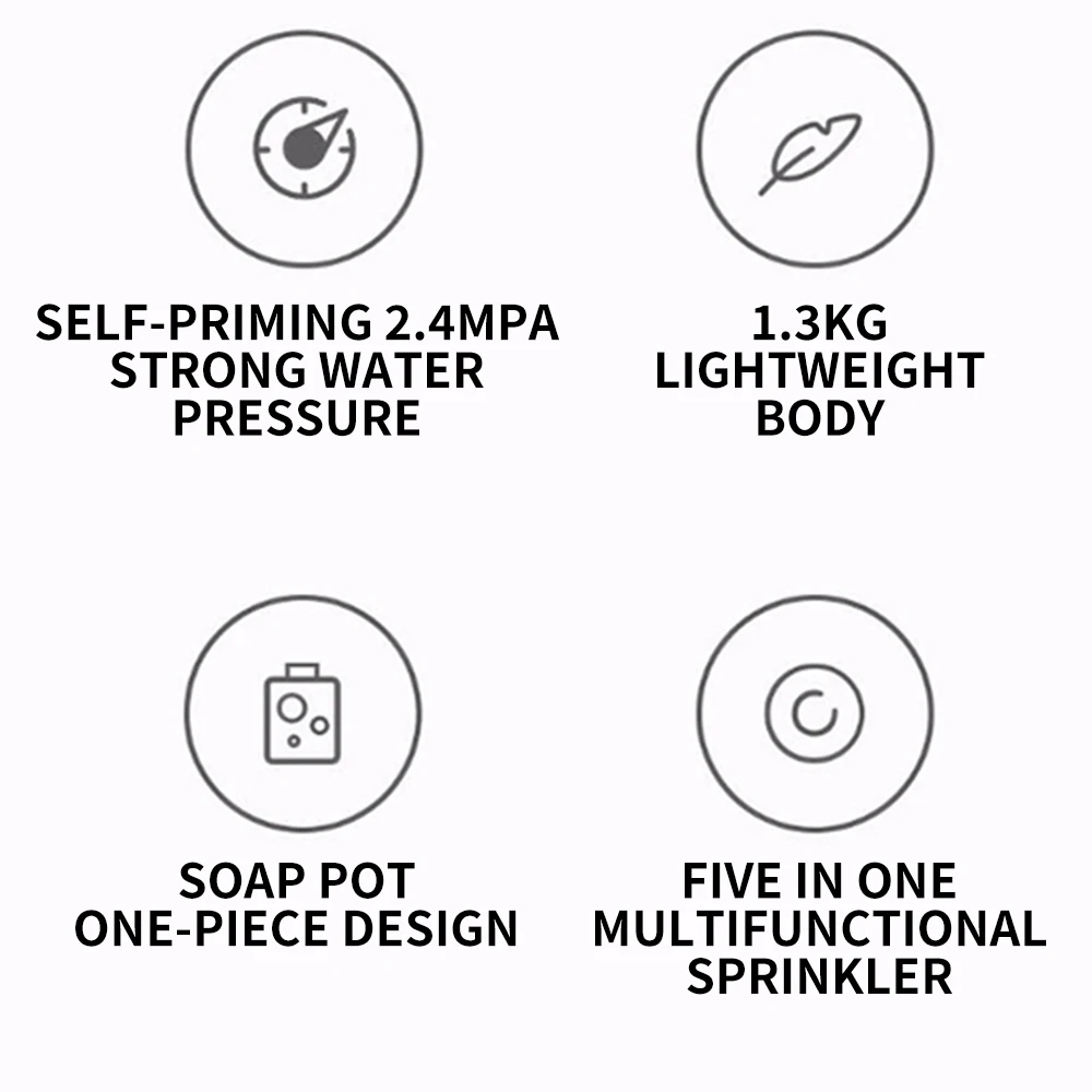 ● It is equipped with a five-in-one multi-function spray head for free switching between foam and water, making the operation more convenient.