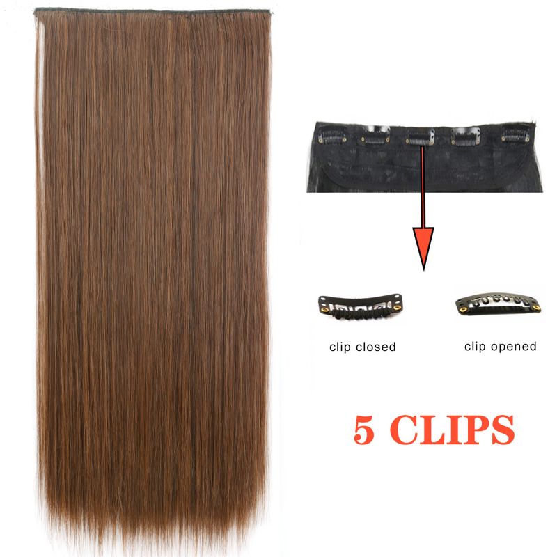 Synthetic Long Straight Hairstyles 5 Clip In Hair Extension 22Inch/32Inch Heat Resistant Hairpieces Brown Black