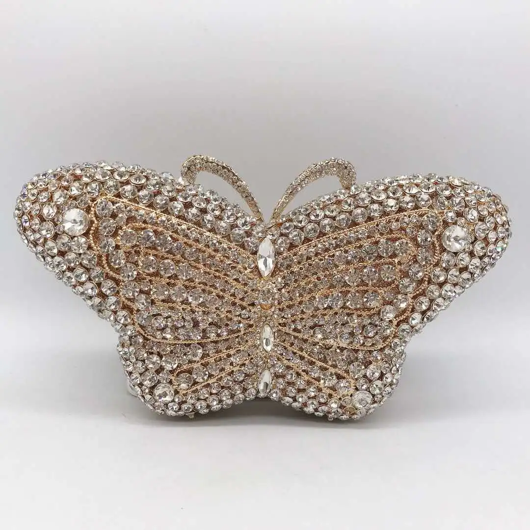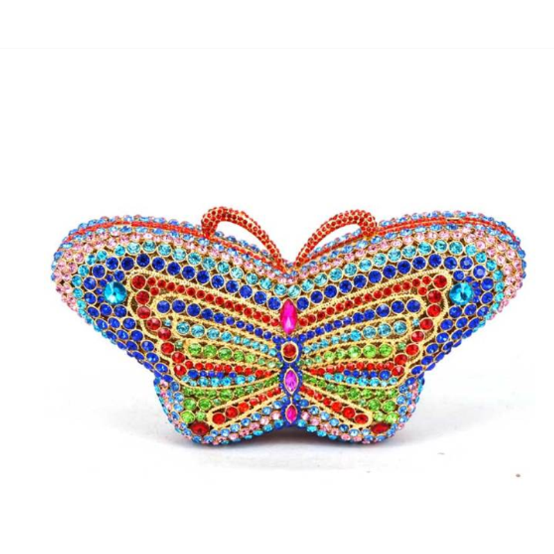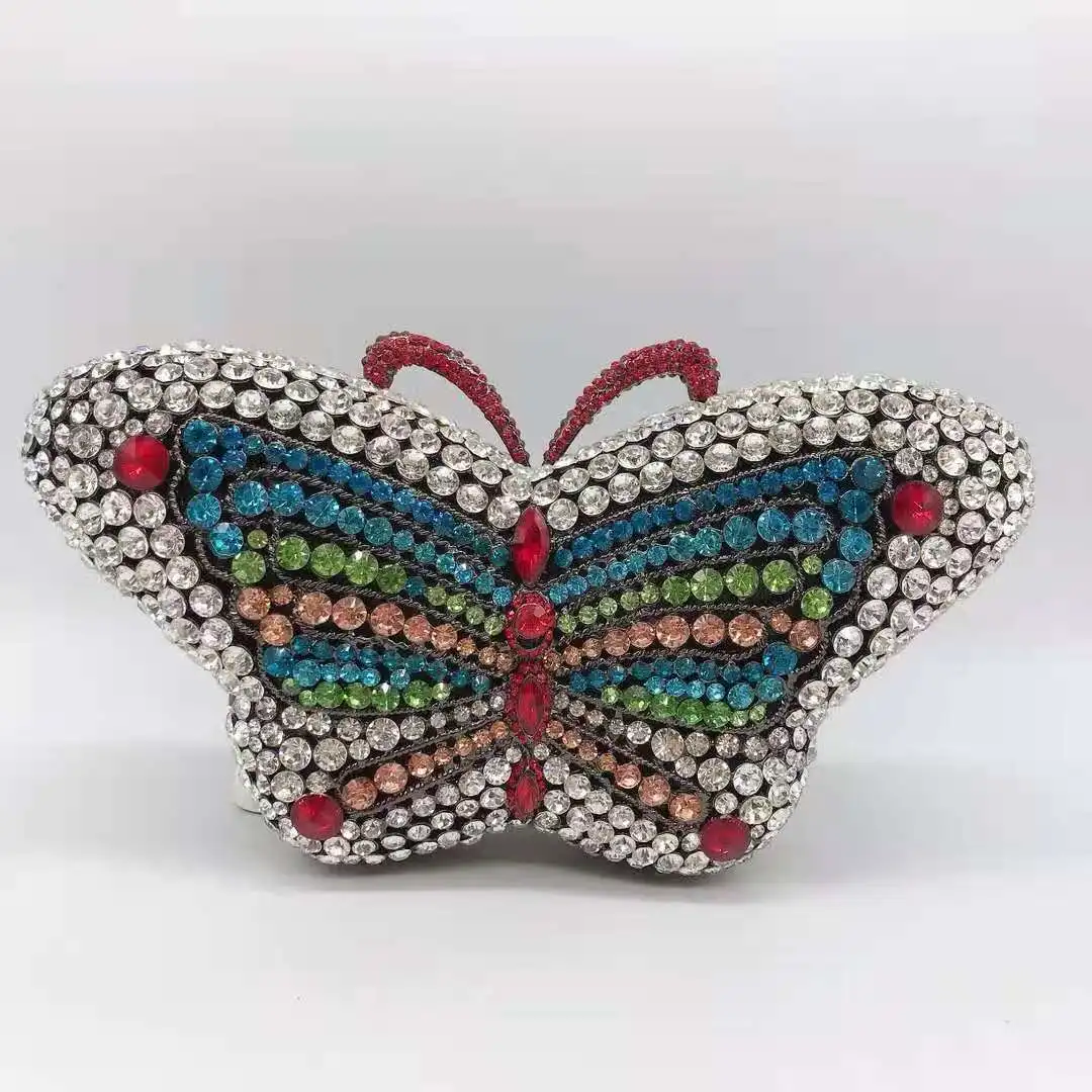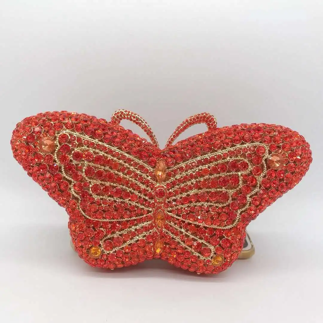 XIYUAN Butterfly Red/Blue Rhinestone Clutch Bag Women Party Wedding Bride Evening Bag Purse Rose Gold Fashion Day Clutches Bags