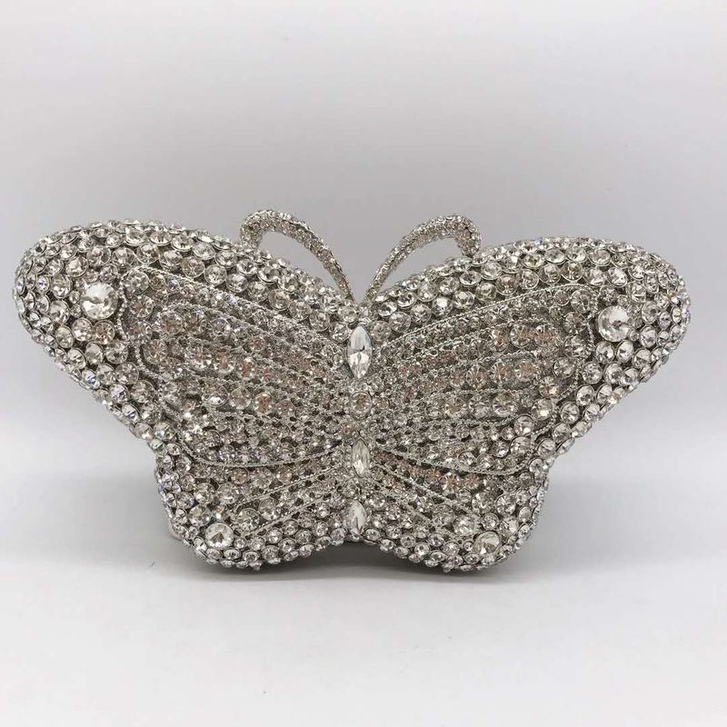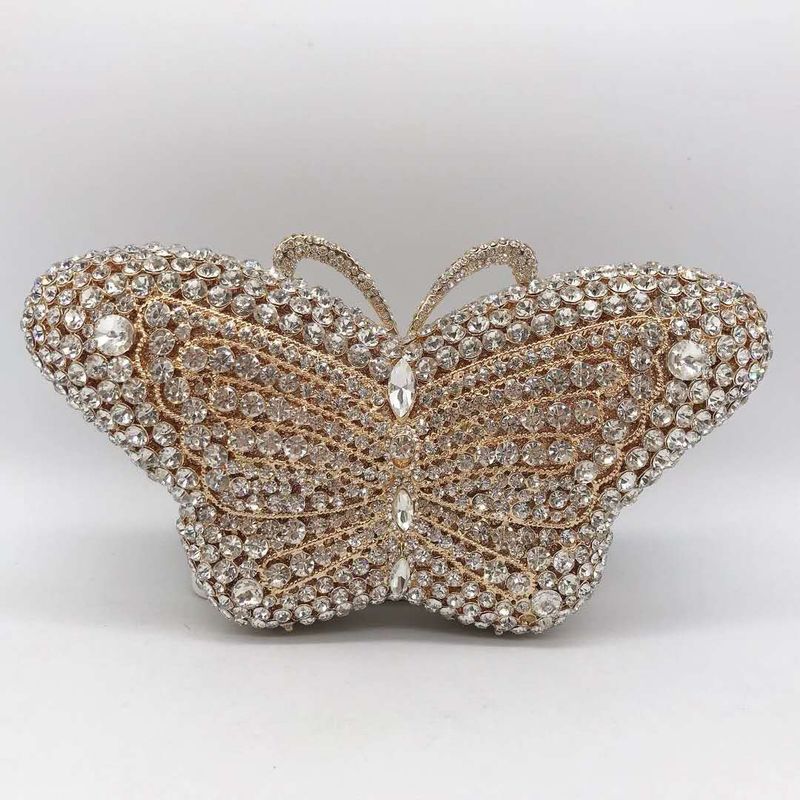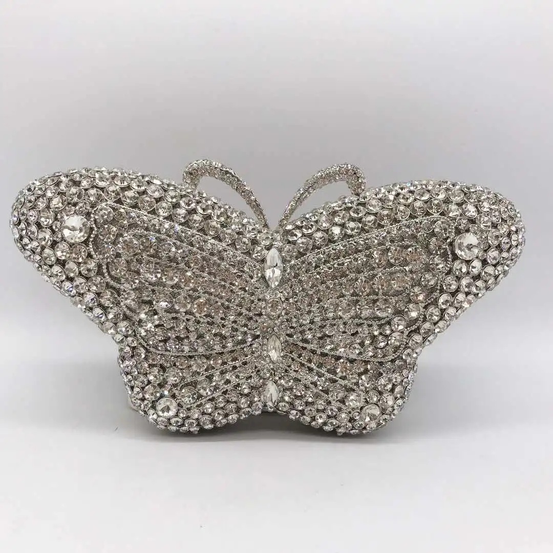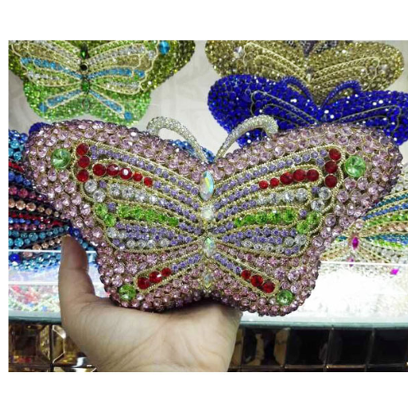 XIYUAN Butterfly Red/Blue Rhinestone Clutch Bag Women Party Wedding Bride Evening Bag Purse Rose Gold Fashion Day Clutches Bags