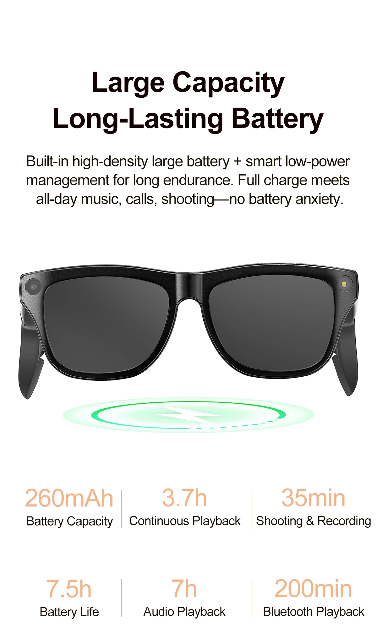 Major function:AI voice assistant/photo taking/recording/music control/calling/prompt tones/indicator lights/translation/intelligent object