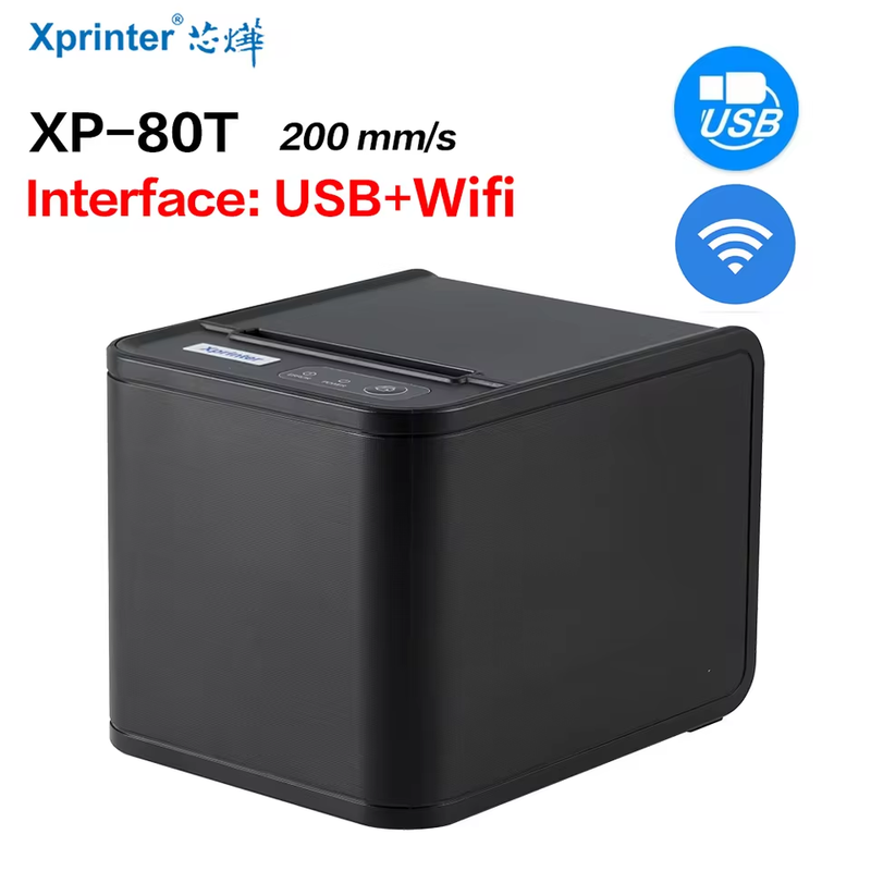XP-T80 Restaurant Thermal Receipt Printer With Order Notification Automatic Paper Cutting HD Printing Logo Text Graphic QR Codes