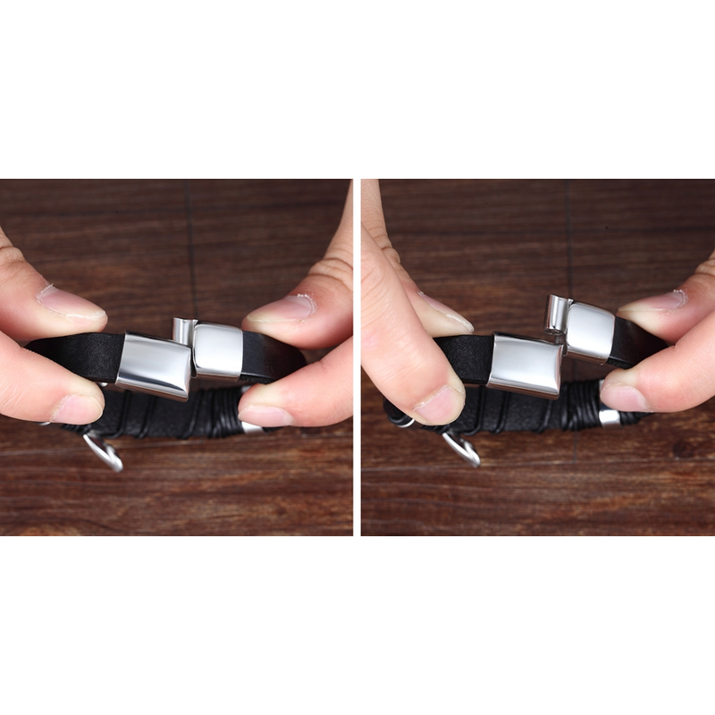 Name:  Woven Leather Rope Wrapping Stainless Steel Men's Leather Bracelet