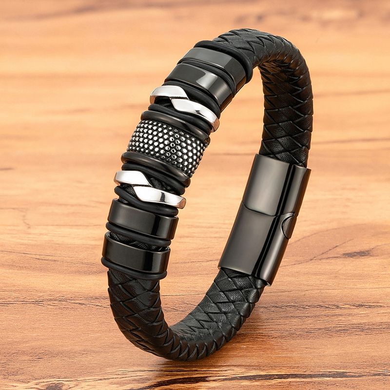 Name:  Woven Leather Rope Wrapping Stainless Steel Men's Leather Bracelet