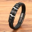 XQNI Fashion Braided Rope Wrap Black Leather Bracelets for Men Classic Style Stainless Steel Bangle Couple Charm Jewelry Gifts