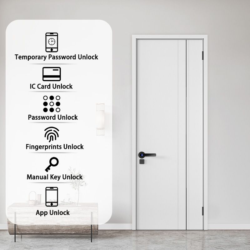 4 Ways To Unlock: Door Lock 4-in-1 with fingerprint + password + app + Key(2 include), fingerprint recognition rate up to 99.8% and open the door just need 1 second. You can add 150 groups fingerprints, Eliminate the trouble of forgetting to bring the key when you go out.