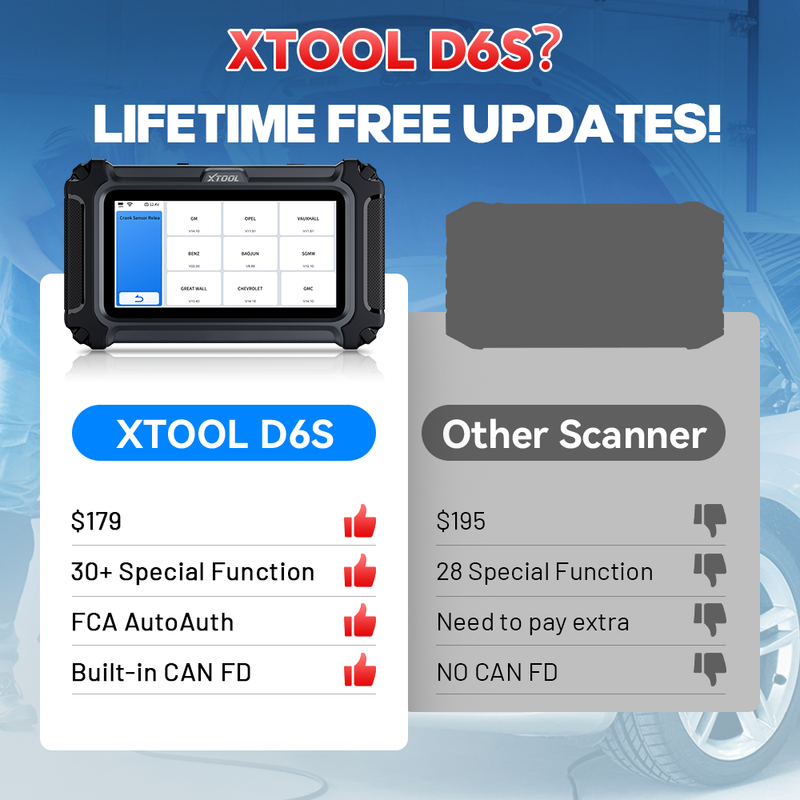 XTOOL D6S supports lifetime free updates which means users can permanently enjoy all features whether in the current software version or the latest functions ten years later. Customers can download them with one click for free. Rest assured there are no hidden fees and more features with expanded vehicle coverage are under development.