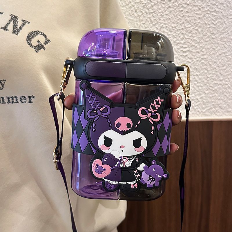 XW Sanrio Kuromi Kids Cute Water Bottle 640ml Double Compartment School Canteen Cup for Child Leak-Proof Student Drink Bottle