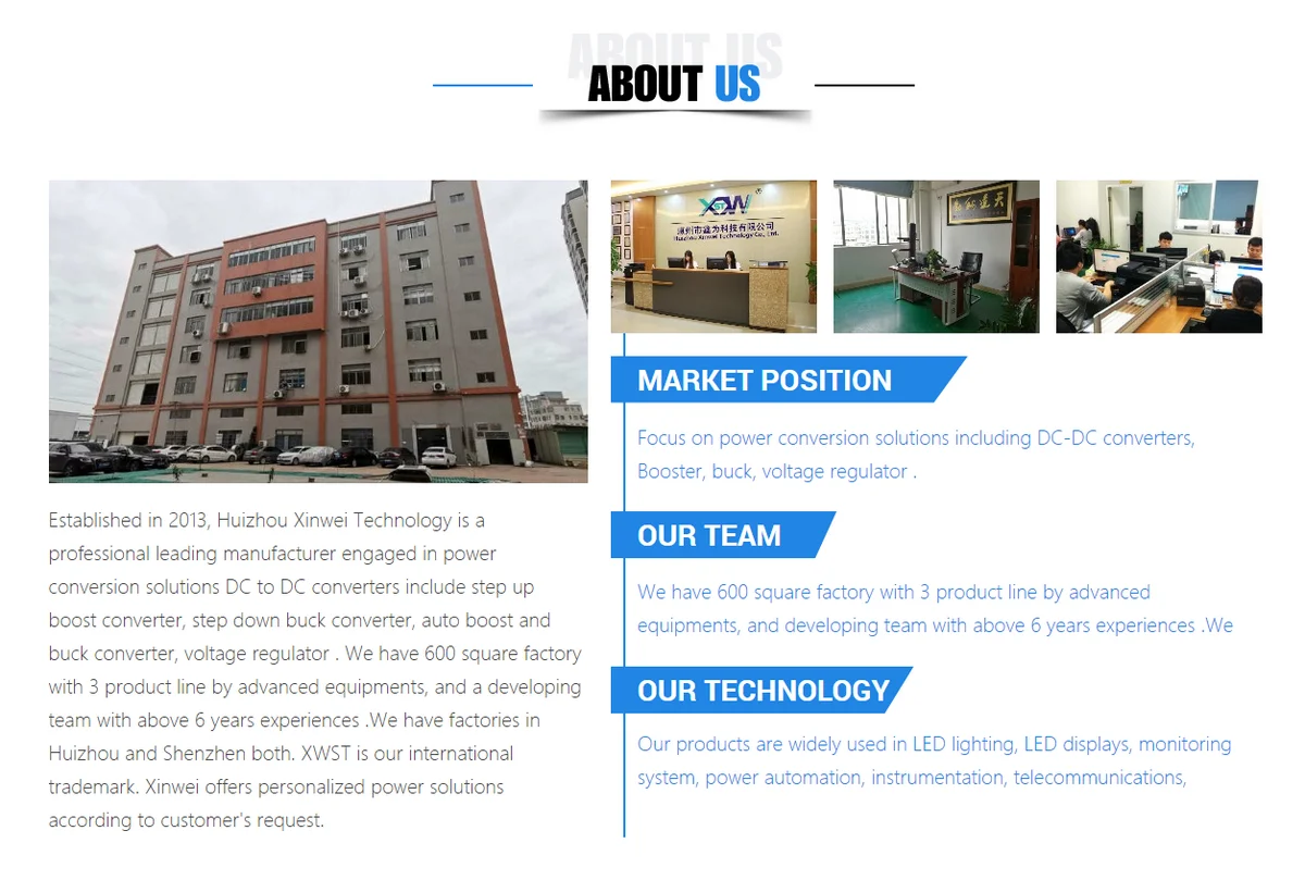 XWST focus on power conversion solutions including DC to DC step up boost converters, step down buck converters, auto boost and buck converters, voltage regulator