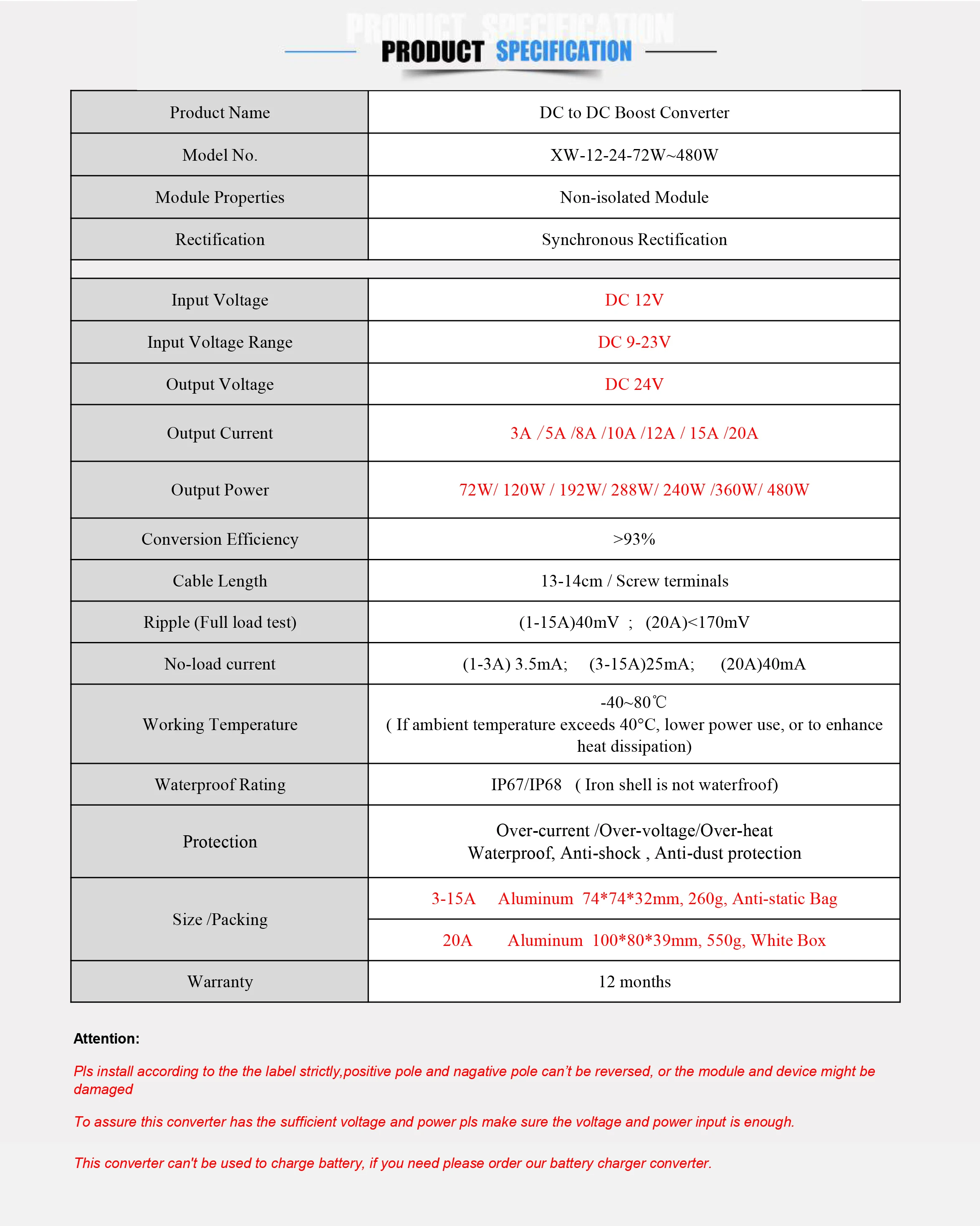 dc dc 12v to 24v step up 3A 5A 8A 10A 12A 15A 20A boost power converter 24vdc voltage regulator