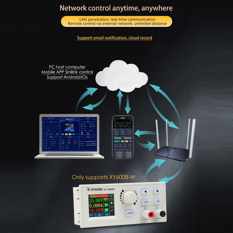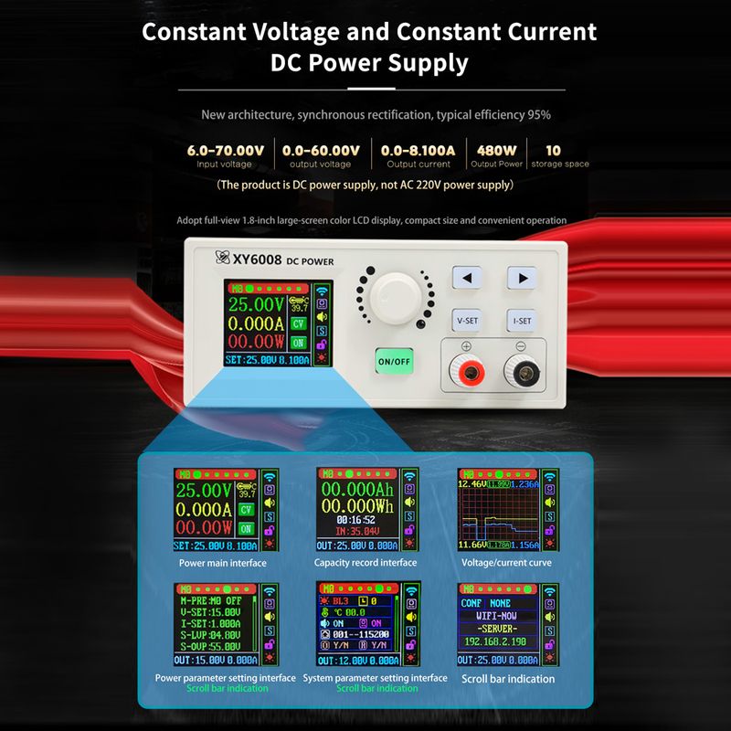 This digital control direct current voltage stabilization power supplys, is compact in size, with full digital keyboard, minimal operation, convenient and fast. With a full-view 1.8inch color LCD display, the large screen supports four-way rotation. Screen brightness settings, 6 levels(0-5 level) of brightness adjustment design. Display color adjustable design, support setting 8 colors. 2 models are available, you can choose XY6008 or XY6008-W according to the use requirements.