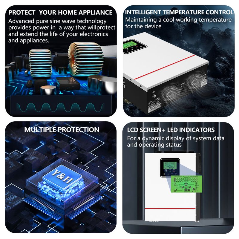 Y&H 1000W Hybrid Solar Inverter 12V AC230V Off Grid Pure Sine Wave Inversor MPPT 80A Solar Charger Max PV 150V