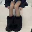 Y2K Fluffy Mid-calf Boots Winter Women Fashion Snow Boots Warm Cotton Shoes